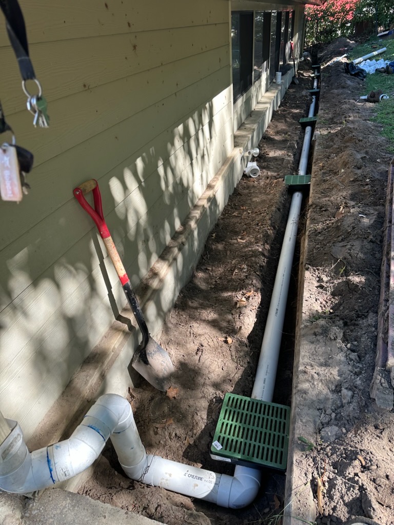 - Channel Drain System — surface trench drains for driveways, patios and walkways that redirect runoff away from your home’s slab or foundation.